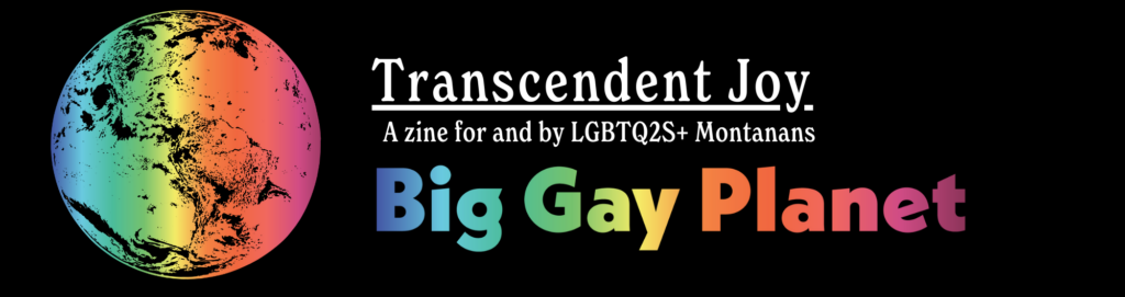 Each year, Forward Montana facilitates the publication of a zine for and by LGBTQ2S+ Montanans, this year the digital extended edition includes contributions from 31 Queer, Trans, and Two-Spirit Montanans. This is the third edition of Transcendent Joy and this year’s theme is Big Gay Planet, which evokes the interconnectedness between queerness and nature. We invite you to flip through these pages and enjoy! On the heels of a grueling legislative session, we want to be very clear: Montana is better because of LGBTQ2S+ people. We have always been here; we will always be here.