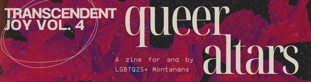 This year, we are focusing in on queer altars with a project chronicling the spaces made divine by queerness and transness. This theme was inspired by the significance, ritual, and worship found in everyday environments, and a desire to share intimate portrayals of Montana queer life, worship, spirituality, magic and devotion in documentary-photography form.