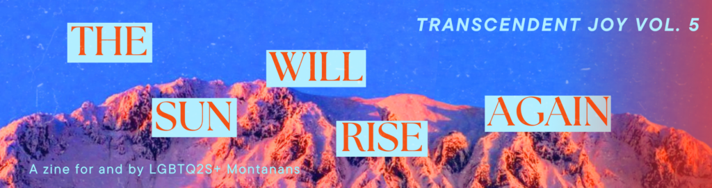 We are so excited to launch our second volume of Transcendent Joy. This year’s edition was guided by a panel of LGBTQ2S+ Montanans whose thoughtfulness, dedication, and diverse perspectives have taken this whole project to the next level. This year’s installment is truly bigger and better than ever, and we are so excited to share this work with you.